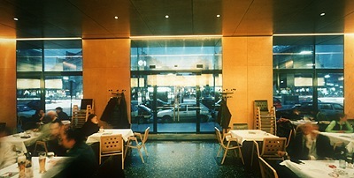 Alles in allem eine überzeugende Belebung eines alten Standortes, eingedenk der Totgeburten in den Cafés Sperl und Landtmann. Das Café Stein, die Restaurants Kiang, Wrenkh und Scala oder die Bar KIX haben den Wiener Boden zur Befreiung von mächtigen Ausstattungstraditionen bereitet. Ifsits ist Wiener, Ganahl und Larch stammen aus Vorarlberg; dementsprechend sind sie eher der Deutschschweizer Gestaltungsszene verbunden. So wundert es nicht, wenn das „Blaustern“ nicht nur Wiener Erfahrungen verarbeitet, sondern das Restaurant „vinikus“ von Annette Gigon und Mike Guyer in Davos als Bezugsebene gilt. Kompromißlose Materialstringenz und gelegentlich zu ernste Formdisziplin, die selbst der Deutschschweizer Einfachheit zum Problem zu werden droht, sind im „Blaustern“ wiederzuerkennen. Mögen materiale Wahlverwandtschaften mit den Vorläufern in Wien existieren, der Unterschied liegt im absichtsvollen Verzicht auf literarische Elemente. Wenn ein Kernsatz von Walter Ifsits zum gestalterischen Umfeld lautet: „Wir hassen die Mode, wir suchen das Understatement, die Reduktion auf das Wesentliche“, dann muß man konstatieren, daß dieses Credo zwar oft zitiert wird, nichtsdestoweniger aber weitgehend umgesetzt ist. Der Lage und Machart des „Blaustern“ entsprechend, ist der Zuspruch im ersten Halbjahr nach der Eröffnung hoch; der wirtschaftliche Erfolg der Investition ist absehbar.