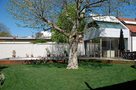 Die innenräumliche Organisation des Hauses ist ansonsten einfach und klar: Wohnen im Erdgeschoß, Schlafen und Arbeiten darüber, im zweiten Obergeschoß liegt das Refugium der Kinder. In den Kinderzim- mern fällt besonders auf, wie faul die landläufigen Vorstellungen von Gemütlichkeit sind: Hier bestehen die Decken aus Metallkassetten, also einem un- verkleideten Industrieelement, dem man eine gewisse Kühle nicht absprechen kann. Aber wie sagte schon Karl Kraus? Gemütlich bin ich selbst.