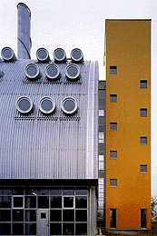 Marie-Claude Bétrix und Eraldo Consolascio beschreiten ihn mit dem Heizkraftwerk Nord (1989 bis 95) in der Stadt Salzburg. Wenn auch evident ist, daß Bauten der Stadttechnik schon per se Symbolgehalt haben, erscheint die weitere Verschlüsselung geeignet, dem Technischen eine Vieldeutigkeit ohne historisierendes Etikett abzugewinnen. Ihr Bau - der wie ein Campanile zur Kirche stehende Schlot und ein plastisch durchkomponiertes Heizhaus - ist keine Beschreibung oder Erklärung, schon gar keine Bebilderung der Funktion, eher ein Ausblendungsversuch mit Hilfe falsch gestreuter Assoziationsketten. Der Betrachter wird am Salzburger Heizwerk Nord über den Zusammenhang von Funktion und Form mit Bedacht im unklaren gelassen, in Wien wird er mit Absicht aufgeklärt.