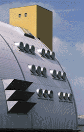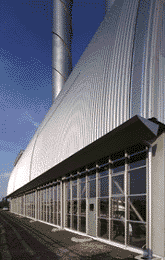 Die anerkennenswerte Leistung dieses Entwurfs besteht sowohl in der Relativierung der zum Zeitpunkt des Vorentwurfs feststehenden maschinellen Ausstattung im Sinne einer überzeugenden Reduktion des umbauten Raumes und der Bauhöhe als auch in der Disziplinierung der einer solchen Realisierung innewohnenden Eigendynamiken maschinen- und hochbaulicher Art. Der auf das Aluminium und seine Eigenfarbe abgestellte Materialkanon wird konsequent durchgehalten. Die die Blechhaut durchstoßenden Öffnungen sind straff geordnet, zu Gruppen zusammengefaßt und so positioniert, daß jede Ansicht aufgeräumt wirkt.