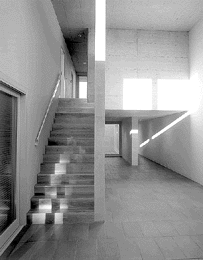 Die Architektur komponiert sich aus dem Charakter der Räume und der differenzierten Lichtführung und -qualität: direktes Sonnenlicht, Himmelslicht im Hof, Widerschein an einer Wand und abgestuftes Dämmerlicht im nach hinten entschwindenden Gang. Kein Lichtkult, wie er noch heute in der klassischen Moderne regiert, sondern Hinwendung zu höhlenartigem Charakter, mit einseitigem Lichteinfall und Abnahme bis zu Dämmerdunkel.