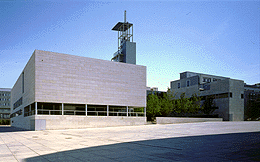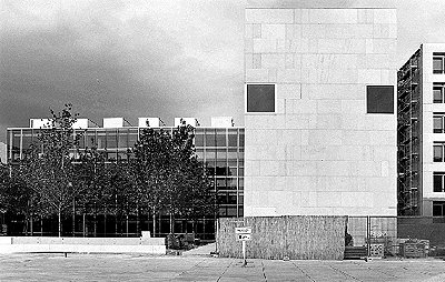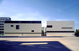 Die Verschiedenheit der Haltungen, wie sie aus den beiden Bauwerken sprechen, hat die Architekten aber nicht gehindert, sich städtebaulich an die eingangs gefaßte Ordnung zu halten. Diese Unaufgeregtheit und Selbstverständlichkeit läßt die Gebäudegruppe nach außen die Funktion eines ruhigen Pols übernehmen. Eine Aufgabe, die mit dem Charakter ihrer Nutzung übereinstimmt.