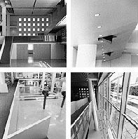 Andererseits kann der Raum gerade in schalltechnischer Hinsicht wirklich allerhand, weil er durch ein verstellbares Lamellensystem und die Bespannung an der Decke sowohl schallweich als auch schallhart gemacht werden kann, und das in zwei Richtungen - über die gesamte Länge ebenso wie in der Breite. Kleinigkeiten fallen noch auf: Wenn Schulklassen kommen, dann finden sie Garderoben mit Schließfächern vor, die sie selbst bedienen können; wenn aber eine spezielle Veranstaltung stattfindet, dann läßt sich aus dem Garderobenbereich ein nahtlos in der Wand versenktes Pult herausziehen, hinter dem die Garderobieren agieren können. Auch Seminarräume sind da - durch Schiebewände trennbar oder eben zusammenlegbar, wie man es braucht. Das Stellwandsystem für den temporären Ausstellungsbereich ist überaus praktikabel. Und ein Abdunkelungselement an der Fassade, das die Fensteröffnungen aufnimmt und nur verschoben werden muß, stellt eine reizvoll einfache architektonische Maßnahme dar.