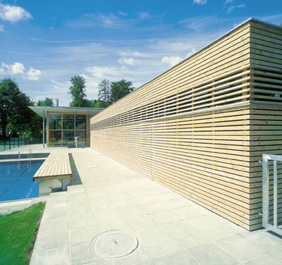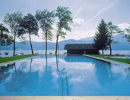 Gesamtansicht mit Restaurant, Umkleidetrakt und Schwimmbecken
