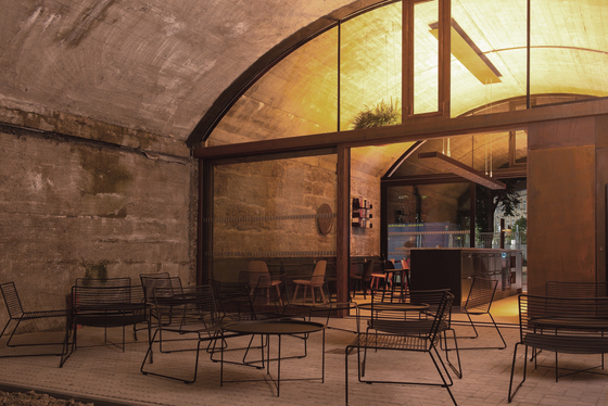 Die tragende Struktur ist nun herausgeschält, um den größten Freiheitsgrad für die Möblierung und die Installationen zu gewinnen. Bei annähernd fünf Metern Raumhöhe ergibt sich durch die Freilegung ein lichtdurchfluteter Saal, in dessen rückwärtigem Teil ein Zwischengeschoß die Nebenräume und die Haustechnik aufnimmt.
