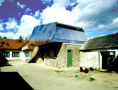 Ein mit Aluminium verkleideter Dachausbau auf dem Stall eines alten Marchfelder Bauernhauses: zwanghafte Neigung zum Besonderen? Für die Architekten Bettina Götz und Richard Mahnal ist es schlicht und einfach eine zeitgemäße Lösung.