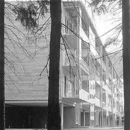 Der Bau von mehrgeschoßigen Holzwohnhäusern hat sich in den letzten Jahren so weit entwickelt, daß jede Assoziation zur zugigen und unwohnlichen Baracke verschwunden ist. Hubert Rieß hatte mit diesem Thema erstmals in Bayern zu tun, wo er 1992 zu einem Wettbewerb für „Mietwohnungen in Holzsystembauweise“ geladen war. Die bayrische oberste Baubehörde verfolgte mit diesem Projekt zwei Ziele: erstens die Holzindustrie zu fördern und zweitens kostengünstigen Wohnraum für Aussiedler zu schaffen. In einem von der Baubehörde selbst geplanten Prototypen war es gelungen, die Baukosten um ein Drittel zu senken, freilich unter Qualitätseinbußen, etwa beim Schallschutz. Für den Wettbewerb wurde daher ein Ziel von 1700 Mark (12.000 Schilling, 863 Euro) vorgegeben.