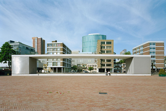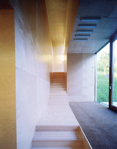 The main facade not only makes a much stronger iconographic statement than one might have expected at this small scale, but also acts as a mediator. The curve emphasizes the entrance, at the same time creating a semi-public space. Through the glass, the street is connected with the building’s interior, exposing the full height of the hall and circulation spaces whilst the prominent concrete volume reinforces the visual continuity. The result is a building whose internal activities are under permanent scrutiny by the city.