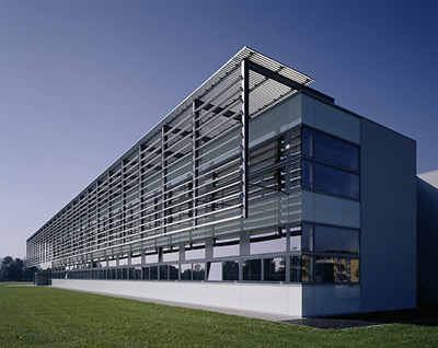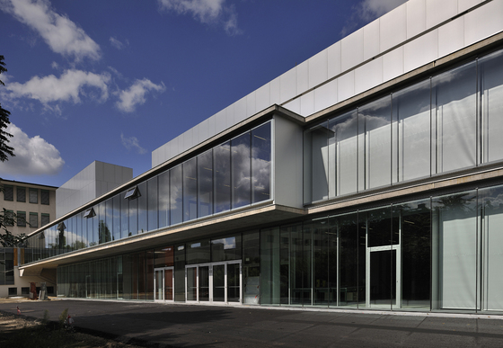 Dieser kleine Koloß in der Mittelachse des Parks – das ist es eigentlich nicht, was man sich unter dem Vorzeichen „zeitgenössischer“ Architektur erwartet. Zugegeben, mit der Vokabel „zeitgenössisch“ muß man vorsichtig umgehen. Denn sie behauptet allzu leichtfertig eine Art Trend, irgend etwas sehr Oberflächliches. Andererseits: So ein auf Mittelachse ausgerichtetes gründerzeitliches Monument ist auch nicht das, was man sich als ersten architektonischen Eindruck für eine heranwachsende Generation vorstellt.