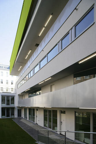 Man schrieb einen geladenen Wettbewerb zum Neubau aus, den gerner°gerner plus mit einer differenzierten Baukörperformation (Projektleitung: Robert Hammer) gewannen. Ein schmaler, vom rapsgelben Dach gekrönter Wohnriegel flankiert den grünen Hofweichteil, um sich straßenseitig mit knochenartig „dickem Ende“ im Mark der Stadt einzuklinken. Der flexiblen Klientel bieten 47 individuelle, multimedial aufrüstbare Wohnungen mit vielfältigen Freiräumen auf ein oder zwei Ebenen den maßgeschneiderten Lebensrahmen. Jeder Haushöhenmeter weitet die Perspektive ins dichte Geflecht der Dachgärten, Terrassen, Balkone und Höfe, die als versteckte Oasen Neubau durchziehen. Lustvoll zelebriert der Riegel das Thema mit eingeschnittenen Atrien, Terrassen und offenen Laubengängen auf jeder Ebene anders.