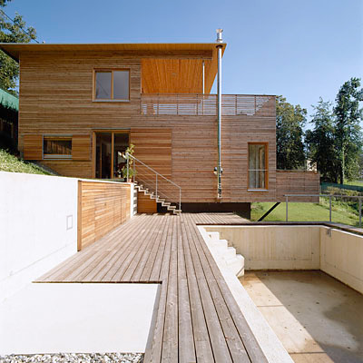 Zum Wohnen war es ihnen zu finster und zu klein, zum Abreißen trotzdem zu schade. Sie machten sich architektenkundig, pragmatisch klare Holzhäuser gefielen ihnen und führten sie ins Büro von Reinhard Schafler. Das Paar liebt die Weite der Wüste und natürliche Materialien: Als blickgeschütztes Refugium im Hang sollte ihr Haus mit dem Altbau und der Natur verwachsen.
