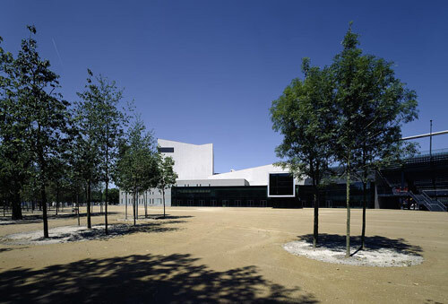 Gefasst wird das neue Wahrzeichen durch die puristische Aussenraumgestaltung des Zürcher Büros Vogt Landschaftsarchitekten. Schon von weitem schimmert der mit ockerfarbenem Splittmastix belegte Platz, auf dem sich das Festspielhaus wie auf einem Präsentierteller erhebt, durch den lichten, von den Auenwäldern des Rheindeltas inspirierten Grünbereich. Gleichzeitig bringen die Kronen der 373 in inselartigen Gruppen gepflanzten Eschen, Pappeln, Kiefern und Kirschen die hässlichen Bauten des Casinos und des Hotels «Mercure» hinter einem Blättervorhang zum Verschwinden und fokussieren damit alle Aufmerksamkeit auf den von Bescheidenheit und Ehrlichkeit geprägten Umbau.