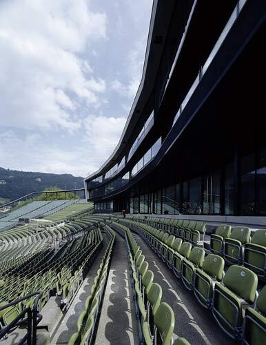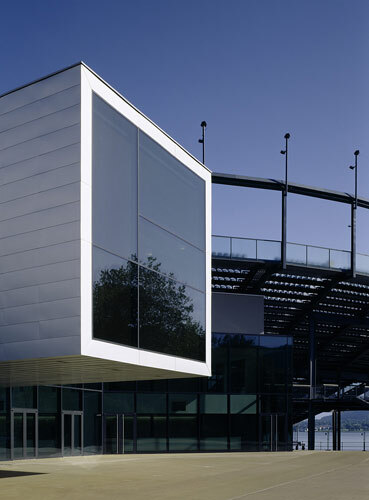 Begonnen hatten die Bodensee-Festspiele auf zwei Ledischiffen. 1952 entstand auf dem Gelände des jetzigen Strandbads die erste Festspieltribüne. Ihr folgte 1979 etwas weiter nördlich die heutige Arena als seeseitiger Anbau an das Festspiel- und Kongresshaus des Bregenzer Architekten Wilhelm Braun, das im Januar 1980 mit einem Soloabend des Pianisten Arturo Benedetti Michelangeli eröffnet wurde. Wohl eignete Brauns Betongebäude eine gewisse Ausdruckskraft, doch der geknickte, banal durchfensterte und rein funktionalen Anforderungen gehorchende Unterbau nahm ihm jegliche Ausstrahlung. Das 1992 siegreich aus einem Wettbewerb hervorgegangene Projekt zur Erweiterung, Sanierung und innenräumlichen Ordnung des Festspielhauses der Bregenzer Architekten Helmut Dietrich und Much Untertrifaller stellte dann dem Kulturtempel ein attraktives Antlitz in Aussicht. Fünf Jahre später konnte der erste Bauabschnitt abgeschlossen werden - bestehend aus dem geduckten, als Gegenstück zum aufragenden Bühnenturm konzipierten Kubus der Werkstattbühne, dem Seestudio und dem vitrinenartigen Seefoyer, welches das zuvor völlig introvertierte Festspielhaus zum Wasser öffnet. Diese Addition sperriger Bauteile wird logisch erschlossen mittels eines hoch über die ganze Anlage gespannten, brückenartigen Verwaltungsbalkens, in dessen Stahlfachwerk die industrielle Anmutung der Erweiterung ihren Höhepunkt erreicht.