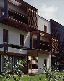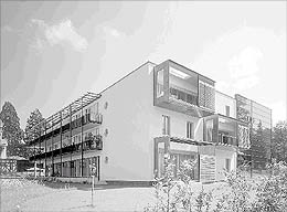 Gnaiger/Mössler konzentrierten sich gleichermaßen auf die Bauwerksgestaltung wie auf die Ordnung des Außenraums. Ihre Stadtvilla sitzt daher, die Parklandschaft freihaltend, knapp am Südostrand des Bauplatzes; hier ist durch Abgrabung des Hanges und eine Stützmauer ein Gartenhof entstanden, der erlaubt, daß sich im Erdgeschoß auch bergseitig die Wohnungen großzügig öffnen können. Der Zugang erfolgt daneben, vom höchsten Punkt des Grundstücks leicht abwärts, beschirmt von einer alten Linde. Auch der Rest des Grünraums ist, als gemeinschaftlicher Garten, von Barbara Bacher und Ilse Huber überzeugend vorformuliert. Zur prototypischen Gestaltung des Grundrisses der Wohnungen gesellt sich jene des Gartens. Da sich eine Villa immer über die schönende, oft distanzierende Beherrschung des umgebenden Territoriums definiert hat, liegt in der schmuckverweigernden, raumbejahenden, nutzerorientierten Gartenkonzeption eine neue, über sie hinausweisende programmatische Aussage.