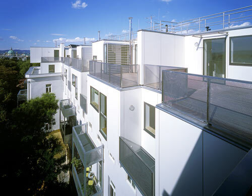 Die alte Bausubstanz war unregelmäßig und verwinkelt. Die Architekten kunath trenkwalder hatten folgende Idee: alten Raster ignorieren, neuen Raster schaffen und hoch über der Stadt einfamilienhausartige Maisonetten schaffen.
