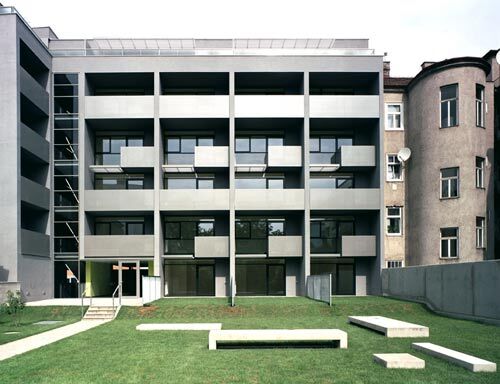 Ein feines Eckhaus von Architektin Patricia Zacek bringt eleganten Schick und hohe Wohnqualität ins Hinterland der Leopoldauer Straße. Das gläserne Foyer erleuchtet nachts die Straße. Die verspielten Loggien lassen das Haus am Eck zur Grätzel-Trade-Mark werden.