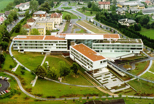 Mit kompakten Umrissen und kurzen inneren Wegen ist das Volumen so locker und gelenkig auf die prachtvolle Wiese am Ortsrand gesetzt, dass Natur und Architektur einander intensiv durchdringen. Das Gebäude generiert eine peripher-urbane Situation. Es inszeniert alle vorhandenen Qualitäten des Grundstücks durch die Verteilung und poröse Verknüpfung der verschiedenen Trakte, und es entspannt dabei die hoch technisierte Funktionsballung eines regionalen Spitals in die luftige, übersichtliche Atmosphäre eines voralpinen Sanatoriums oder Thermen-Hotels: das ganze umgebende Panorama des oststeirischen Hügellandes ist hier in das innere Erlebnisprofil der Anlage herein genommen.