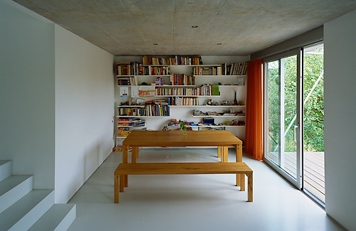 Reduziert und aufs Wesentliche beschränkt: Die Bauherren wollten in schlichten Räumen leben. Auf einer schmalen Parzelle mit nur acht Metern Breite planten ihnen die Architekten thaler.thaler ein Haus, das seine räumlichen Qualitäten über ein paar Split-Levels verstreut.