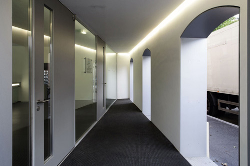 Und sie haben städtebaulich gedacht und einen klar definierten Zugang geschaffen - der nicht nur durch den Schriftzug weithin erkennbar ist, sondern auch durch eine dezente, aber wirkungsvolle räumliche Lösung, die unter Arkaden auf einen verglasten Eingang hinführt. Man musste natürlich heftig entkernen und entsprechende statische Maßnahmen setzen, um so weit zu kommen. Das Kellergeschoß zum Beispiel: Das war vorher nichts und ist jetzt etwas. Nämlich einer der Hauptschauplätze des gewünschten Rettungsmuseums, das ebenfalls zum Raumprogramm gehörte. Übrigens das einzige Rettungsmuseum in Wien, zwar, was die Exponate betrifft, nicht sonderlich spektakulär, aber einen Klassenausflug für Volksschüler wird es schon wert sein. Zitat Markus Geiswinkler: „Auch wenn die Exponate im Grund unbedeutend sind - es ging trotzdem darum, einen würdevolle Rahmen zu schaffen.“
