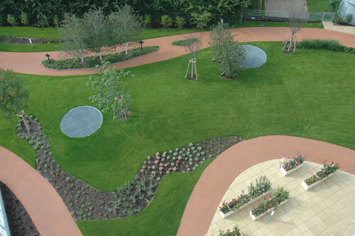 Hier ist das rundum gelungen. Die Bewohner sehen entweder in die Tokiostraße oder - gartenseitig, denn dieses Haus verfügt über einen großen „Therapiegarten“, den Jakob Fina geplant hat.