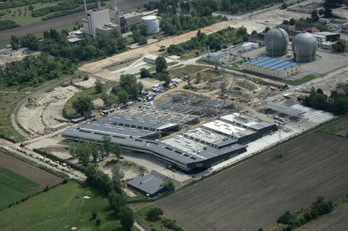 Ein weiterer Faktor, der im Alltag normalsterblicher Architekten wohl eher zur großen Ausnahme gehört, ist der riesige Maßstab: 20.000 Quadratmeter verbaute Grundfläche. Das Gebäude, das darauf steht, ist so breit und so flach wie eine Flunder. In Zahlen: Eine Fassadenlänge von 150 Metern ist an diesem Gebäude keine Seltenheit. „Wenn man den ganzen Tag vor dem Computer sitzt, dann lernt man, mit solchen Dimensionen natürlich geschickt umzugehen“, erklärt Hemma Fasch, „doch wenn man dann das erste Mal auf der Baustelle steht, merkt man erst, dass das Arbeiten im Kastl mit der Realität nichts zu tun hat.“ Das macht nichts. Zu Fuß geht hier niemand, hier fahren ohnedies alle mit dem Bus.