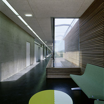 Für die wenige Zeit, in der das Gebäude für die volle Meute gerüstet sein muss, ist für jeden nur erdenklichen Komfort gesorgt. Es gibt Aufenthaltsräume, Schulungszimmer, Garderoben, Duschen, stille Rückzugsorte und gleich eine ganze Schar an lichtdurchfluteten Atrien, in denen hoffentlich schon bald die ersten Topfpflanzen und Zitronenbäumchen gedeihen werden. Hemma Fasch: „In der Planungsphase ist oft betont worden, was für ein Händchen die Busfahrer und -fahrerinnen denn nicht fürs Grüne hätten! Hier werden sie die Möglichkeit haben, diesen Spleen auszuleben.“ Mit den Mitarbeitern werden die Pflanzen einziehen. Letzteres ist ein Geschenk der Architekten. Damit geht man der eigenen Gepflogenheit nach, dem Bauherrn nach erfolgreichem Projektablauf ein Pflänzchen zur Pflege in die Hand zu drücken.