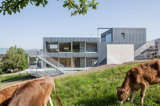 Man wurde fündig. Den befreundeten Architekten Siegfried Loos und Margot Fürtsch, die unter dem Namen polar firmieren, präsentierte Familie J. den häuslichen Fund und den eigenen Grund, um noch ein paar heiße Tipps zu ergattern. Die Architekten kamen und staunten: Das sonnige Grundstück, schön in einer Talmulde gelegen, erwies sich als leichte Hanglage. Mit dem Traum des Fertighauses aus der Blauen Lagune war es damit aus und vorbei.