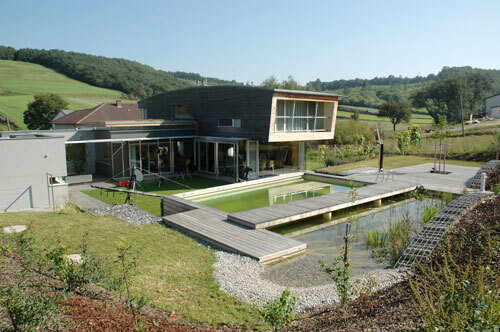 Man wurde fündig. Den befreundeten Architekten Siegfried Loos und Margot Fürtsch, die unter dem Namen polar firmieren, präsentierte Familie J. den häuslichen Fund und den eigenen Grund, um noch ein paar heiße Tipps zu ergattern. Die Architekten kamen und staunten: Das sonnige Grundstück, schön in einer Talmulde gelegen, erwies sich als leichte Hanglage. Mit dem Traum des Fertighauses aus der Blauen Lagune war es damit aus und vorbei.