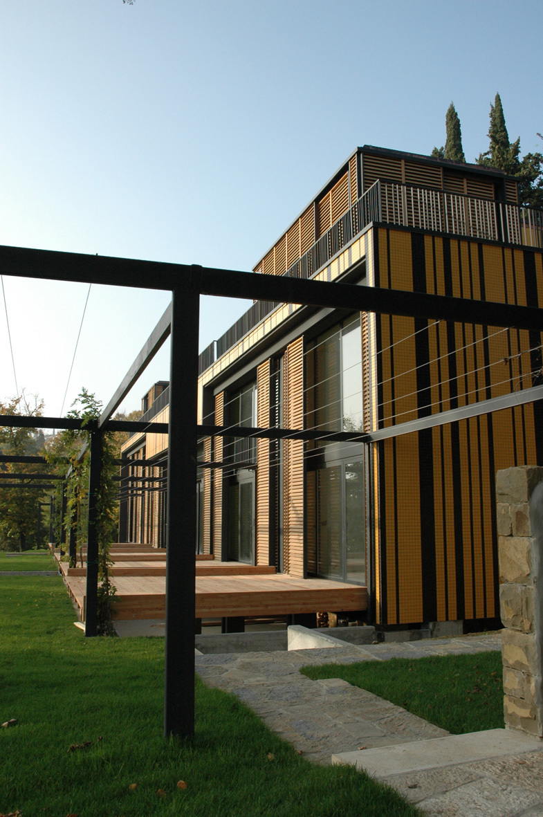 Villa Artes is a housing project in the centre of Portorož, the main slovenian seaside resort. It is constructed out of eight individualy shaped flats, with a large outside open space area. The project has been developed on the thesis of the master abauth identity of space in contemporary architecture. Starting points were added to the urban conditions. Characteristic of the traditional architecture were treted as a proces, a metod which created new resaults. The building is devided in 8 parts, each has a diferent orgnisation, which is based on the scheme of the organisation of old city palaces. They have all the same acces (in the statue from t he 15th century, it is considered as a basic right). Instead of green atriums, there is a garden. All the materials are taken from the local area. The fasade is manely made of stone and has a textile texture, it is a reinterpretation of he 15th century) important palaces of the cityies of the coast.