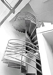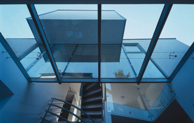 Ganz besonders ist übrigens das durch alle drei Ebenen durchgesteckte Treppenelement. Die Bauherrin hat sich eine Stahltreppe gewünscht. Eine solche hat sie jetzt auch, halbgewendelt, wie im sozialen Wohnbau, und doch von einer skulpturalen Stringenz, die ihresgleichen sucht. Man könnte sagen: Wie sich die Treppe um eine 30 Millimeter ausschwingende Blechplatte herumfaltet, wie die Zahnung zum durchgängigen, formgenerierenden Prinzip gemacht ist, das zeigt vielleicht am deutlichsten, welche Qualitäten durch den konstruktiven, aber auch den Gestaltungswillen eines Architekten zu erzielen sind.