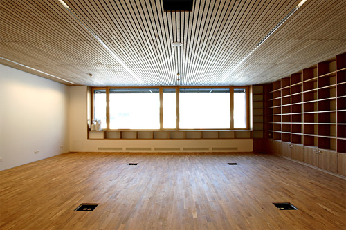 Doppelkreuzwärmetauscher) versorgt die Klassenräume mit frischer Luft; In der Übergangszeit stellt eine Sonnenkollektoranlage mit 200 m² den Grossteil der
