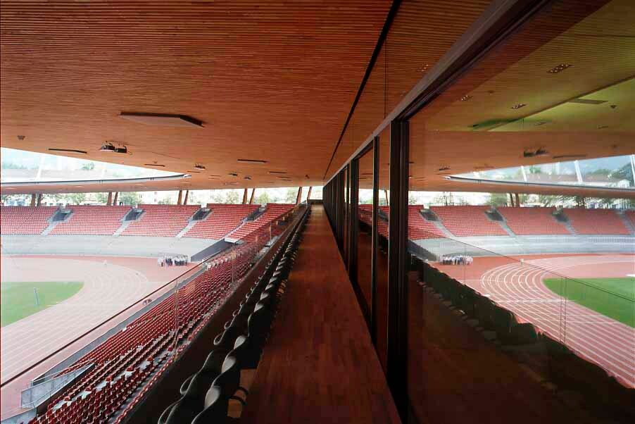 JuryBegründung: Das Bauwerk fügt sich wie selbstverständlich und bescheiden ins Stadtbild und ist für ein Stadion angenehm unspektakulär. In der Durcharbeitung und Umsetzung wird die gemeinsame, gelungene Zusammenarbeit zwischen Architekt und Ingenieur deutlich.
