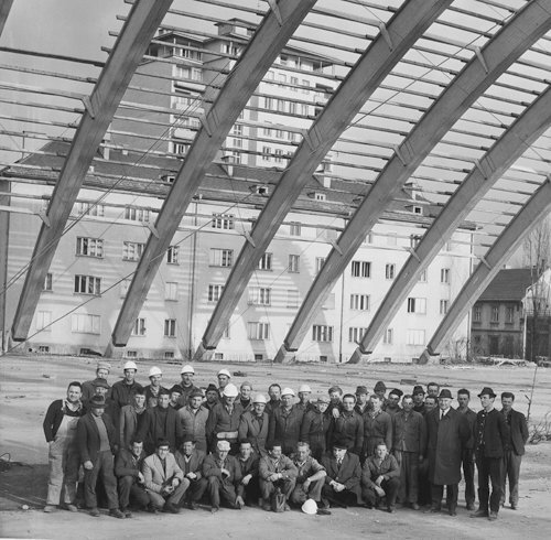 Was aber bewog die damals Verantwortlichen zu der Weitsicht, einer derart großzügigen Hallenlösung zuzustimmen? Man hätte doch eine billigere, vielfach unterstützte Dachkonstruktion bevorzugen können. Aber es war eine Zeit der wirtschaftlichen Hochkonjunktur und man sollte und wollte für den in Österreich noch jungen Holzleimbau deutliche Signale nach innen wie außen setzen sowie dem Namen einer Holzmesse gerecht werden. In Europa gab es damals an ähnlich großen, freigespannten Holzkonstruktionen lediglich zwei in Frankreich und eine – in Planung – in Belgien. Sollte da Österreich als das europäische Holzland nachstehen?