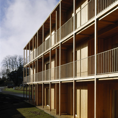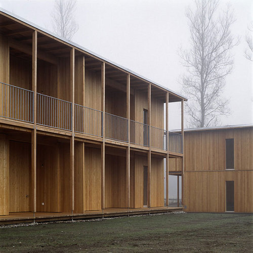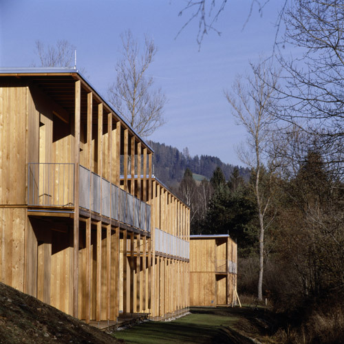 Die aufgelockerte versetzte Bebauung findet ihre Vorbilder in den bäuerlichen Gehöftformen der Region. Zwischen den Gebäuden entstehen Nachbarschaftsbereiche, Freiräume die eine vielfältige Nutzung von privater bis halböffentlicher Natur zulassen
