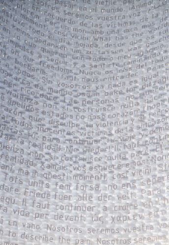 Ungewöhnlich schnell, nicht ganz zwei Monate nach dem Anschlag, schrieben das Verkehrsministerium, die staatliche Eisenbahngesellschaft und die Stadtverwaltung gemeinsam einen internationalen, offenen Ideenwettbewerb für Stadtplaner, Architekten, Bildhauer und weitere Bildende Künstler aus. Auf dem Verkehrsrondell vor der großen Eingangsrotunde des von Rafael Moneo 1992 umgebauten Bahnhofs sollte ein Mahnmal für die Opfer entstehen. Gedacht hatten die Auslober bei der Wahl der Ortes und der Formulierung der Anforderungen wohl an eine monumentale Plastik. Durchsetzen in der Konkurrenz aus fast dreihundert Einsendungen konnte sich aber der eher konzepthafte Beitrag eines Teams fünf junger madrilenischer Architekten und Architekturstudenten, FAM Arquitectos, die eine ganz andere Lösung präsentierten. Ihr Entwurf erweiterte das im Stadtraum platzierte Zeichen, eine aus der Verkehrsinsel blockhaft herausbrechende, gläserne, amorphe »Lichtwolke«, um eine darunter liegende Halle in der Ladenzeile der Bahnhofspassage. So schufen sie einen abgeschlossenen Ort, der neben der Erinnerung auch ein ruhiges Gedenken ermöglicht. Die aus Glassteinen aufgetürmte, elf Meter hohe Lichtwolke sollte im Inneren eine weitere leichte Lichtblase umfangen – bedruckt mit den Namen der Opfer – und den in Kobaltblau gehaltenen Raum beleuchten. Immaterialität und Licht waren die Elemente, mit denen sie dem Geschehen und dem Andenken gerecht werden wollten; baubar war die Idee in der dargestellten Form (noch) nicht.