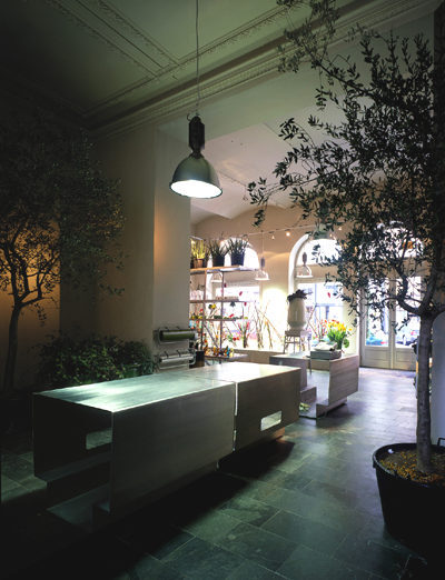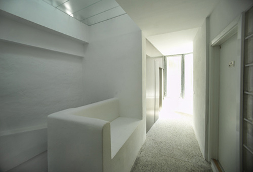 Die Bauherrin ist als Musikerin viel auf Reisen und wollte daher Ballast abwerfen. Auf der Suche nach einem Refugium, einer kleinen Wohnung mit der Perfektion einer Hotelsuite stieß sie auf das Haus des Kindes. Das Gebäude ist nicht nur eines der wenigen, die der Architekt der Stalinallee, Hermann Henselmann, selber plante, hier bezog er mit seiner Familie auch zwei Wohnungen. Der turmartige Bau bildet mit seinem nahezu identischen Gegenüber ein Tor zum Strausberger Platz und überragt die angrenzende Bebauung um mehrere Geschosse. Der fröhliche Klassizismus und die Lage der 1 1/2-Zimmerwohnung im 7. Obergeschoss, wo sich das Gebäude auf Traufhöhe seiner Nachbarn zurückstaffelt und eine große Südterrasse mit Panoramablick offeriert, waren die ausschlaggebenden Argumente für die Wohnung.