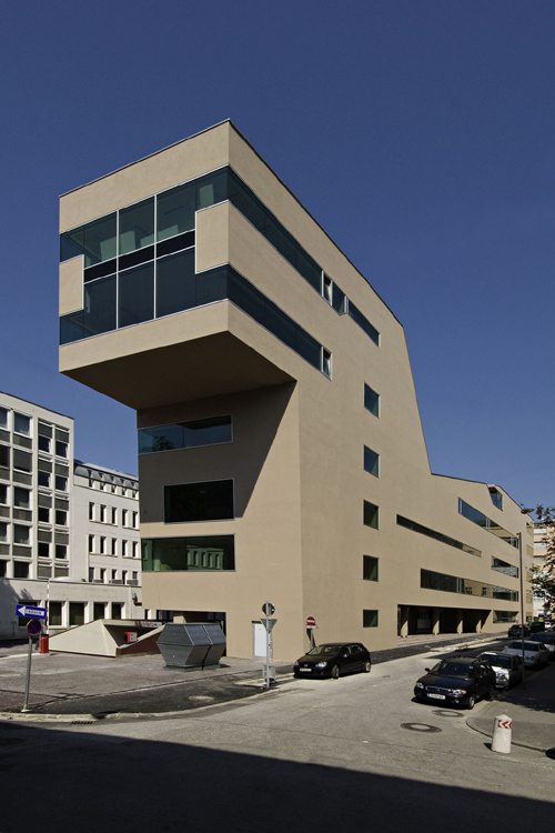 Die Volksbank Salzburg hatte im Jahr 2003 einen geladenen Wettbewerb für ihr neues Headquarter ausgelobt. BKK-3 hatte diesen in der Folge mit einem städtebaulichen Entwurf gewonnen, der einen großen Innenhof vorsah, der aus den skulpturalen Baukörpern gebildet wird.