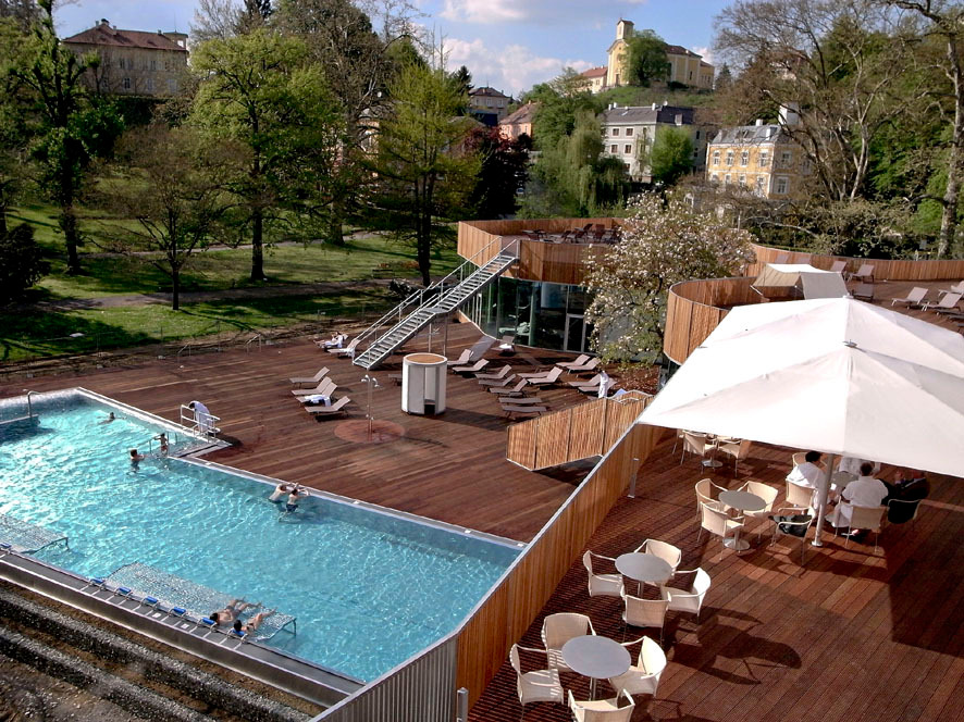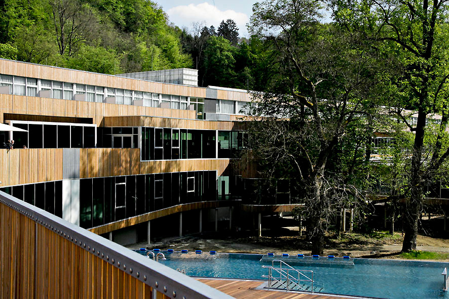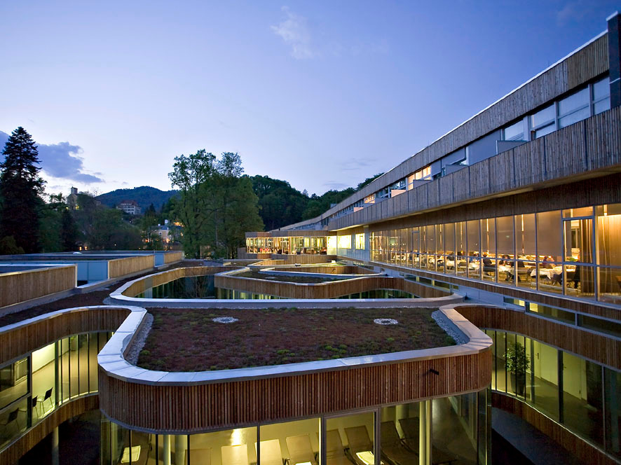 Im steirischen Bad Gleichenberg ließen sie sich auf das Abenteuer ein, ein ambitioniertes Gesundheits- und Hotelprojekt in Architektur zu gießen. Geholt hat die Skandinavier Christian Köck, Vorstand der Health Care Company, die auch Bauherrin der Anlage ist, nachdem ein Architektenwettbewerb kein Ergebnis brachte, mit dem man sich zur Gänze identifizieren konnte. Mit dem modischen Begriff „Wellness“ will der bekannte Gesundheitsökonom nichts zu tun haben – und mit den geisterbahnhaften Bade- und Erholungswelten, die auf diesem Sektor wie die Schwammerl aus den mit Thermalwasser getränkten Böden schießen, auch nicht. „Heilen bedeutet ganz machen“, und deshalb war es wichtig, dass bei diesem Projekt medizinische Qualität, ortsgerechte hochwertige Architektur und ein gesundheitsförderndes Ambiente eine Synthese eingehen, kurzum ein „Kulturprojekt bilden – und kein Spaßbad“.