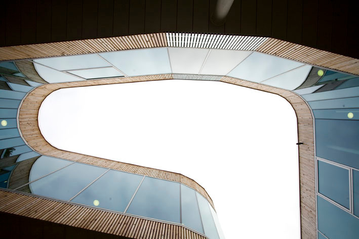 Nur schade, dass Jensen & Skodvin sich bei der Innenraumgestaltung kaum einbringen konnten. Diese wurde unter der Ägide der auf Corporate Design spezialisierten Agentur Satek durchaus gefällig umgesetzt. Man spürt das Bemühen, ein angenehmes Ambiente in dezenten Farben zu schaffen, und dass die Gäste je nach Vorliebe unter Hotelzimmern mit Holzboden oder Teppichbelag wählen können, ist eine lobenswerte Idee. Die norwegischen Architekten hätten sich vielleicht weniger geschmeidig dem Geschmack einer genussorientierten Gesellschaft angepasst. Betrachtet man ihre anderen Bauten, kann man davon ausgehen, dass manches wohl spartanischer ausgefallen wäre. Die Stimmung wäre vermutlich kontemplativer und der Einklang mit der Architektur naturgemäß ein anderer.