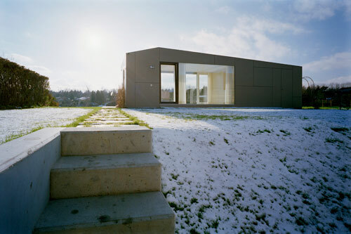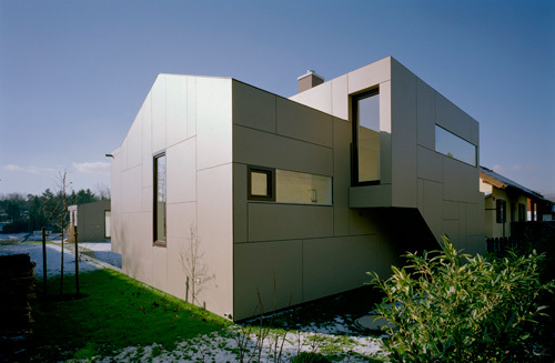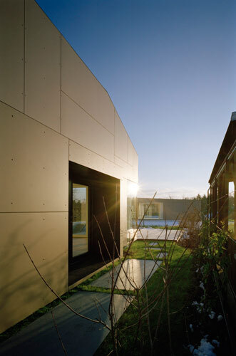 Aus den kargen Vorschriften der Bauordnung drechselte sie ein lichtdurchflutetes Haus mit einem praktischen Nebengebäude. Außen besticht der mattbraune Baukörper durch schlichte Eleganz. Innen erzeugen differenzierte Raumhöhen, vorstehende Bauteile und ein abgegrabener Keller ungeahnte Weite.