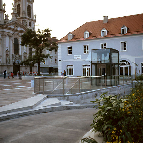 Ausfahrt Tiefgarage, Garagenerschließung mit Treppe und Lift