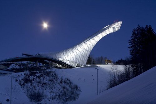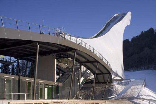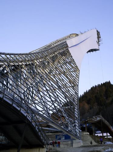 Pünktlich am ersten Januar dieses Jahres fand in Garmisch-Partenkirchen das Neujahrsspringen auf der neuen Skisprungschanze statt, deren Stahlkonstruktion, derzeit noch sichtbar, in diesen Wochen mit jedem Tag mehr hinter Polycarbonatplatten verschwindet. Dem Bauwerk voraus ging die Sprengung der alten Schanze im April 2007 und ein Wettbewerb, bei dem die Tragwerksplaner federführend waren.