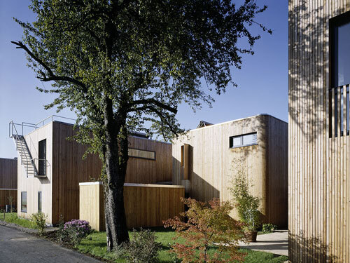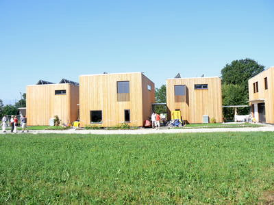 Komfortlüftungsanlage mit Erdreichvorerwärmung und Wärmerückgewinnung (Wirkungsgrad > 90 %), Raumwärmeeinbringung über Fußboden- bzw. Wandheizungssystem, Energie aus 7 Pufferspeichern (800 bzw. 1000 Liter in den Kellern der Häuser) über thermische Sonnenkollektoren beheizt (auf den Dächern – jeweils zwischen 8 m² und 14 m²), Abdeckung von 90% des Warmwassers und 30 % des Raumwärmebedarfs mit Solarenergie, restlicher Wärmebedarf mit zentraler Pelletsheizanlage (25 kW Leistung)