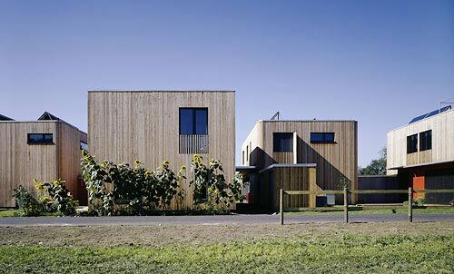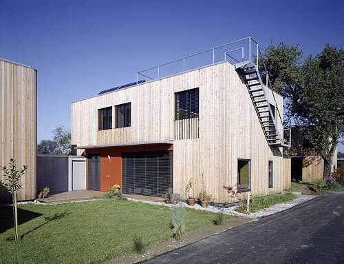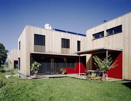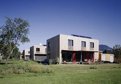 Komfortlüftungsanlage mit Erdreichvorerwärmung und Wärmerückgewinnung (Wirkungsgrad > 90 %), Raumwärmeeinbringung über Fußboden- bzw. Wandheizungssystem, Energie aus 7 Pufferspeichern (800 bzw. 1000 Liter in den Kellern der Häuser) über thermische Sonnenkollektoren beheizt (auf den Dächern – jeweils zwischen 8 m² und 14 m²), Abdeckung von 90% des Warmwassers und 30 % des Raumwärmebedarfs mit Solarenergie, restlicher Wärmebedarf mit zentraler Pelletsheizanlage (25 kW Leistung)