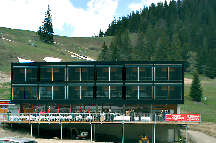 Neben Niedrigenergiestandards zeichnet ein intensiver Landschaftsbezug alle Anlagen aus. Die Optimierung des »Panoramablicks« mittels großflächiger Verglasungen und Glasbalkone verbindet sich mit dem jeweils spezifischen Reagieren auf Topografie und Kontext. Durch die Aufständerung der Holzkörper wurden attraktive, geschützte Freibereiche gewonnen (Wildalpen), manche Module wurden im Hang eingebettet (Passail, Planneralm) bzw. mit gedeckten Erschließungsbereichen terrassiert (Bad Aussee).
