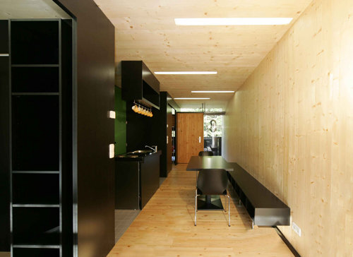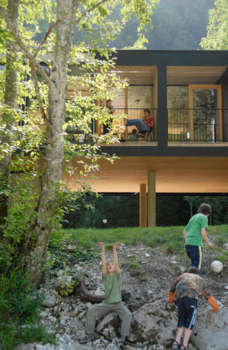 Modulares Bauen, Serienproduktion, Flexibilität, Ortsungebundenheit, all dies suggeriert der vor rund fünf Jahren formulierte Anspruch von HolzBox. Das Innsbrucker Architekturbüro konnte 2003 den Wettbewerb der steiermärkischen Landesregierung für ein multifunktionales Campmodul für Jugendliche und Familien für sich entscheiden. Das modulare Musterkonzept sollte die architektonische, infrastrukturelle und funktionale Qualität von Ferienherbergen verbessern. Gefordert waren ein Betreuermodul mit einem Bett, ein Jugendraummodul mit sechs und ein Familienmodul mit vier bis fünf Betten. Die Lösung von HolzBox war einfach: drei gleich lange, beliebig kombinierbare Containermodule aus Massivholzplatten. Denn obwohl ursprünglich eine Ausführung in Holzrahmenbauweise geplant war, entschieden sich die Architekten im Lauf des Umsetzungsprozesses für die Holzmassivbauweise mit Brettsperrholzplatten, da diese, so Ferdinand Reiter, der Architektur viel eher entsprach und nicht zuletzt aufgrund der geografischen Nähe zu den steirischen Produzenten auf der Hand lag.