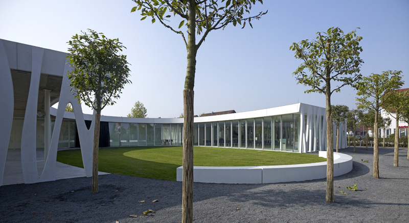 In this ambience of variegated white, one is easily reminded how thin the line can be between the religious and the clinical – the light of Germany’s southwest supports this balancing act. The extravagant formal idiom marks the community centre out as something special and creates a feeling of being in a town centre that is, for once, not occupied by commerce. A successful interplay, then, of architecture and town planning.