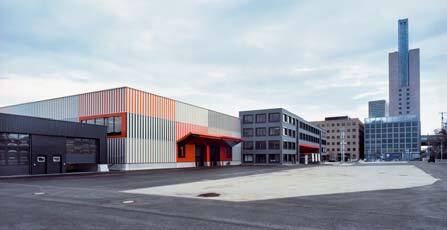 In diesem prominenten Umfeld nimmt das im Jahr 2007 fertiggestellte Cargo Center von Kölling Architekten eine besondere Stellung ein, sollte doch die Nutzung als Logistikzentrum inmitten der Ausstellungshallen auch für Messebesucher deutlich ablesbar sein. Dem Masterplan des Frankfurter Architektur- und Stadtplanerbüros Albert Speer und Partner (AS&P) folgend, bildet das Cargo Center den Auftakt für den jüngsten Bauabschnitt auf dem Areal im Südwesten des Messegeländes. Die Halle, die sich mit ihrer Hauptfront zur Ausstellungsfläche orientiert, schafft auf der Ostseite zum Bahnkörper hin einen vom Freigelände aus nicht einsehbaren Vorbereich, der als Rangier- und Ladehof genutzt wird. Als Antwort auf die Heterogenität der benachbarten Bauten entwickelten Kölling Architekten eine 130 x 42 Meter große Halle, die die Maßstäblichkeit der benachbarten Messehallen aufgreift, sich durch die Gestaltung der Fassade aber deutlich von ihnen unterscheidet.