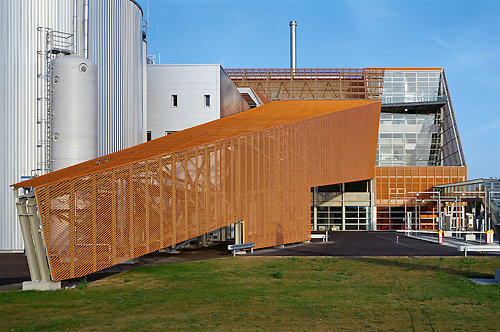 Klar ist, dass der Architektur bei einer solchen Einrichtung nur eine nachrangige Rolle zukommt. Das Sagen haben die Anlagenbauer, die von vornherein festlegen, in welcher Dimension und Abfolge die unterschiedlichen Funktionen organisiert sein müssen. Daran ist einfach nicht zu rütteln. Veselinovic und Resetarits hatten aber trotzdem Möglichkeiten, eigene Vorstellungen zu entwickeln und zu realisieren. Und die gehen über die – allerdings wirklich signifikante – orangefarbene Streckmetall-Gitterhaut, mit der weite Teile dieses Anlagenbaus überzogen sind, entschieden hinaus. Vergessen wir nicht: Trotz aller Industrialisierung arbeiten hier immer noch Menschen – und die brauchen Räume, nicht nur Anlagentechnologie. Außerdem ist überraschenderweise auch die Frage der Besucher ein eigener – architektonischer – Punkt. Schulklassen kommen sowieso. Sie können hier sehr anschaulich erleben, was Großstadtmüll eigentlich bedeutet und auf welchem Stand wir bei seiner Verwertung sind. Es kommen aber auch andere Gäste, sogar ausländische Delegationen, die womöglich selbst eine solche Anlage planen.