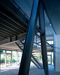 Bei diesem Bürozubau zum Bestand eines übrigens höchst ambitionierten burgenländischen Fassadenbauers - ARS arbeitet immerhin für Coop Himmelb(l)au, auch für das BKK 3 - geht es natürlich wieder um Stahlbau. Das liegt in der Natur der Aufgabe, und es hat mit ganz pragmatischen Anforderungen zu tun. Die Bauzeit sollte ungewöhnlich knapp sein - ursprünglich waren sechs Wochen geplant, daraus wurden dann zwar drei Monate, aber auch das ist letztlich äußerst kurz bemessen. Selbst für einen Bau mit nicht mehr als 250 Quadratmeter Nutzfläche, organisiert auf Erdgeschoß- und Obergeschoßniveau.